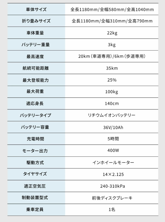モーター出力: 400W後輪モーター